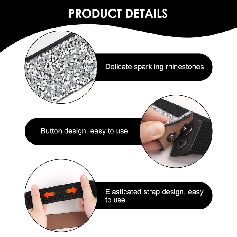 - EASY TO USE & MAINTAIN: The rhinestones are positioned on the front of the belt for an elegant look. If there's a slight glue smell when new, ventilate it for a short period for optimal use.