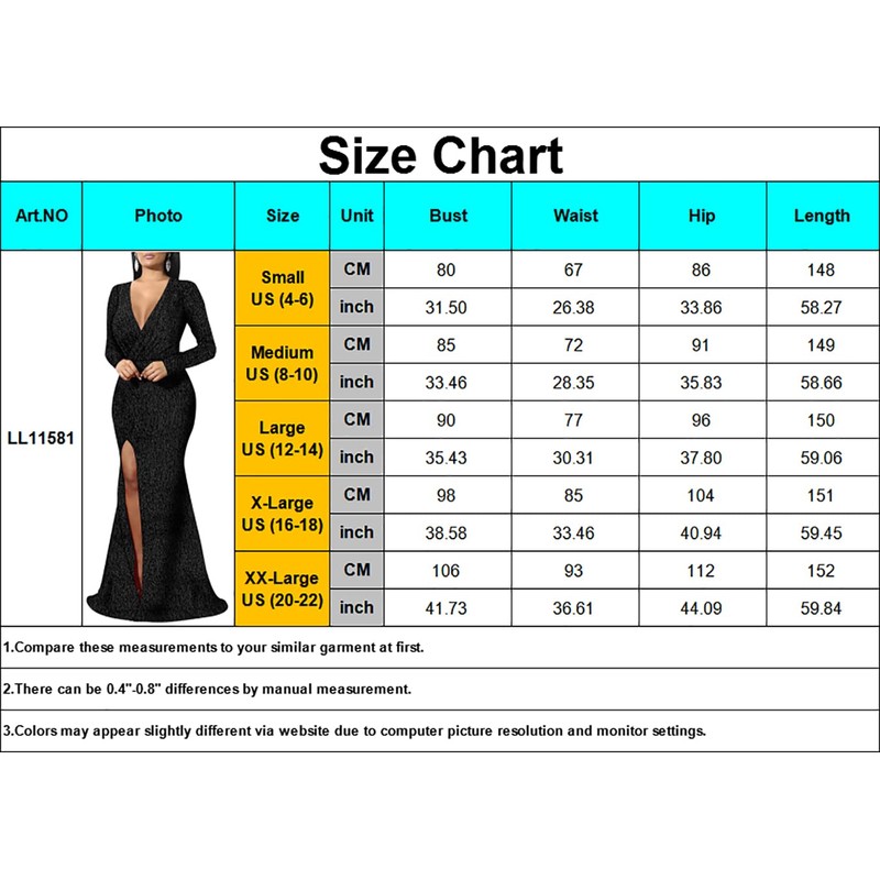 - Feature: Long Sleeve, V Neck, High Slit, unique sexy sparkly maxi dress. Exquisite tailoring can better show your charm and elegant. This dressy dress make you shining, eye-catching and outstanding.