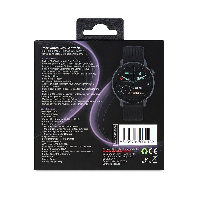 • SPORT AND PERSONALIZATION Choose from more than 130 sports modes and personalize the dial with your own unique images or designs in the DCU Smart App. Additional features: tracking female cycle, weather information, sedentary alarm, sleep monitor, camera shutter release, phone finder, calculator and much more.