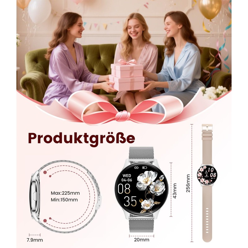 - More than a watch: A token of love and care: This elegant smart watch for women combines innovative technology with emotional warmth - the perfect gift for Christmas, Valentine's Day, birthdays, Thanksgiving or special anniversaries. With 3 months free return & refund, 2 years full warranty and 24/7 customer service. A daily companion that combines reliability with personal meaning and celebrates special relationships.