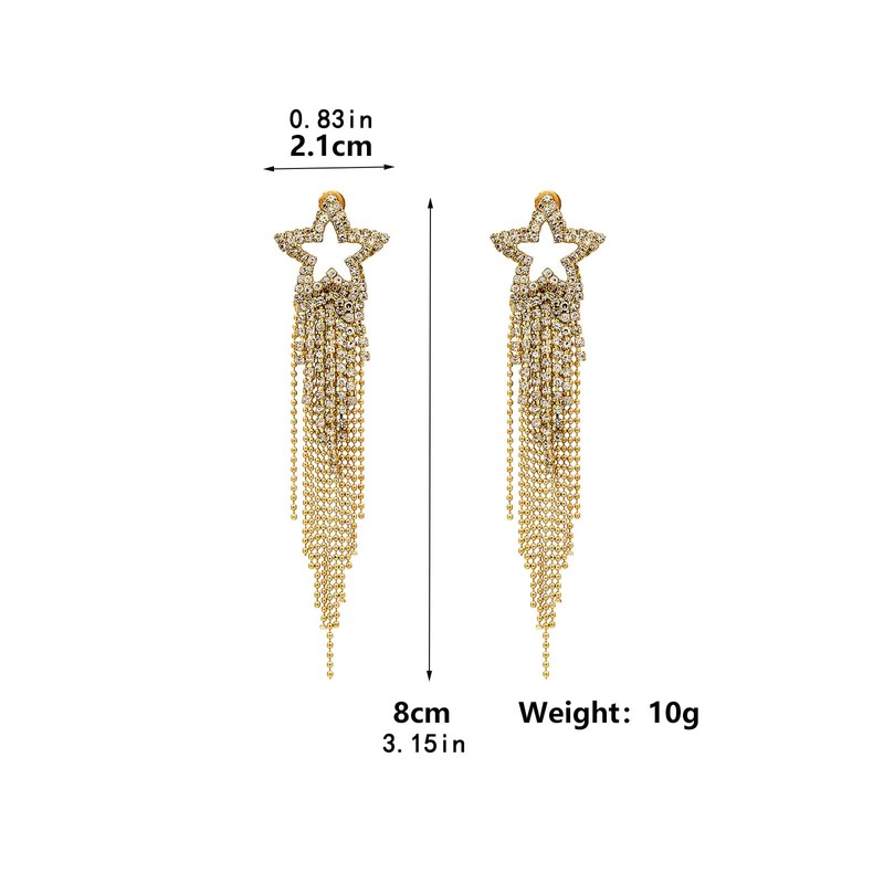 - Dimension & Material - Star earrings: about 3.8 inches (total length), star ear stud: about 1.2*1.2 inches, beaded tassel: about 3 inches. Crafted in Eco-friendly alloy, AAA rhinestones