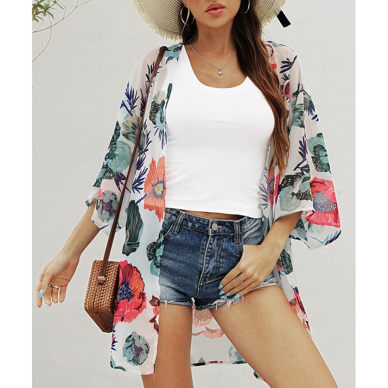 - Features: Casual kimonos for women have bat sleeve, loose fit, boho style, Sheer chiffon, floral printing shawl design. The cut tops are sure to turn heads. No summer look is complete without our flowy kimono