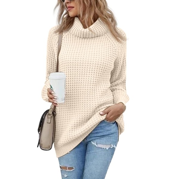 Women's Turtleneck Sweaters Oversized Lightweight Long Sleeve Pullover Loose Chunky Knit Jumper Tops Beige