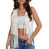 Women Tassel Vest 70s Hippie Faux Suede Rivets Sleeveless Fringe Waistcoat Open Front Boho Western Jacket Cardigan (A-White, M)