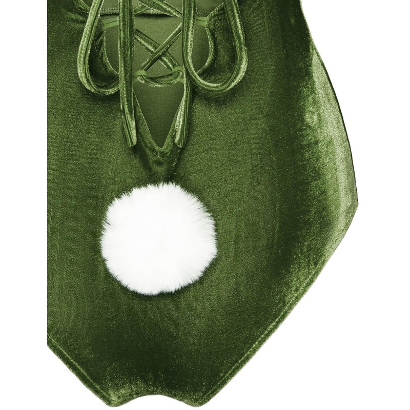 Women Velvet Bunny Costume Bunny Girl Suit Costume Senpai Cosplay One Piece Bodysuit Stockings Set(JGreen L)