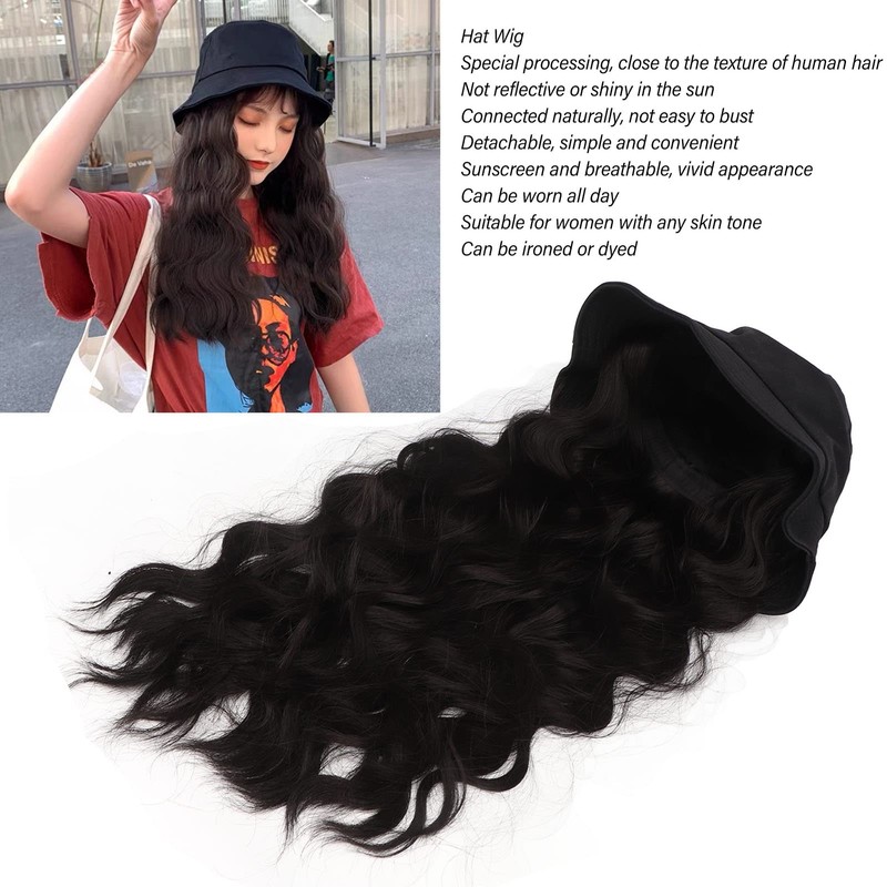 - Hat Wig Women Wig Hat-SUNSCREEN FUNCTION: Fisherman hat wig is sunscreen and breathable, vivid appearance, can be worn all day