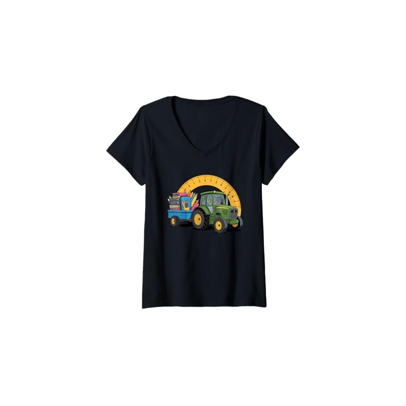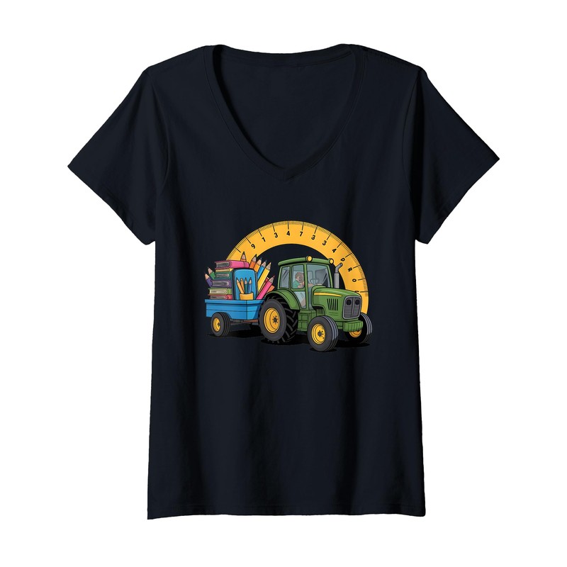 Womens Back to School Tractor Farm Boys V-Neck T-Shirt