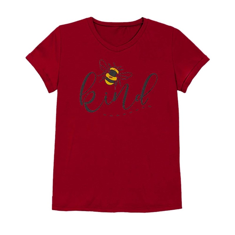Womens Be Kind Graphic Tees V Neck Cute Printed Summer Casual T Shirts Tops (Wine Red,Small)