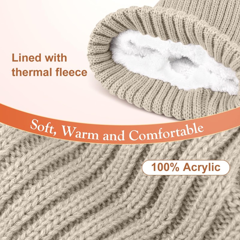 Womens Beanie Hat Gloves Set Winter Knitted Beanie Hat for Women With Pom Pom Warm Touchscreen Gloves Set for Running, Skiing (CA/US, Alpha, One Size, Beige)