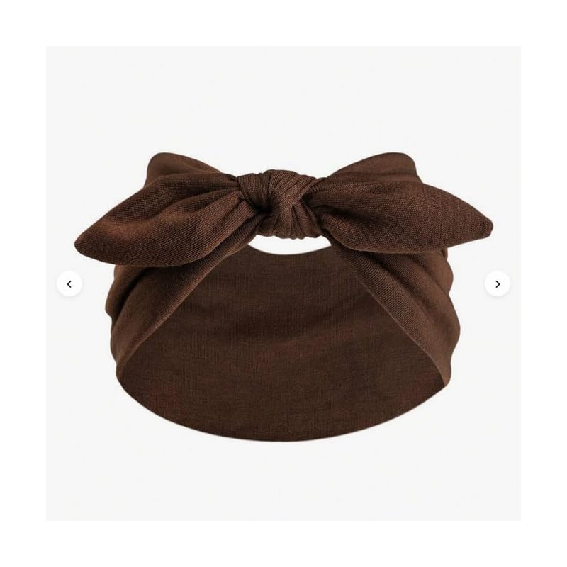 Womens Bow Headband, Elastic Hair Wrap, Wide Knotted Style (Brown, One Size)