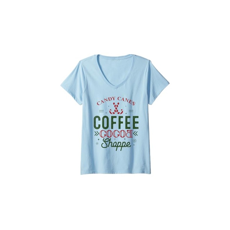 Womens Candy Canes Coffee Cocoa Shoppe Funny Christmas V-Neck T-Shirt