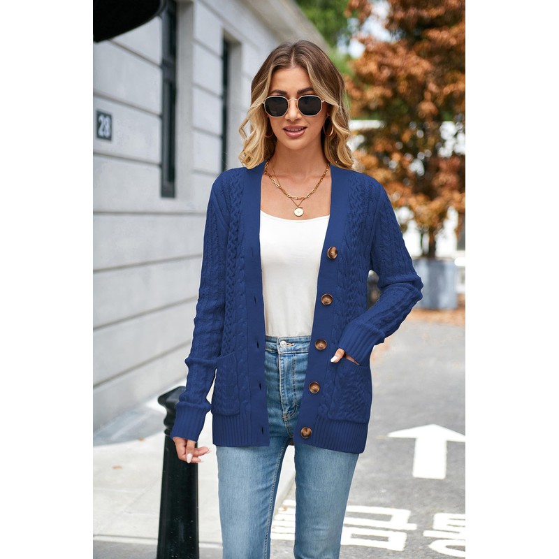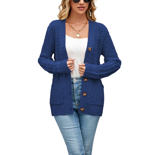 Womens Cardigan Sweaters Cable Knit Sweater 2025 Fall Winter Chunky Open Front Button Down Coats with Pockets Classic Blue US 4-6