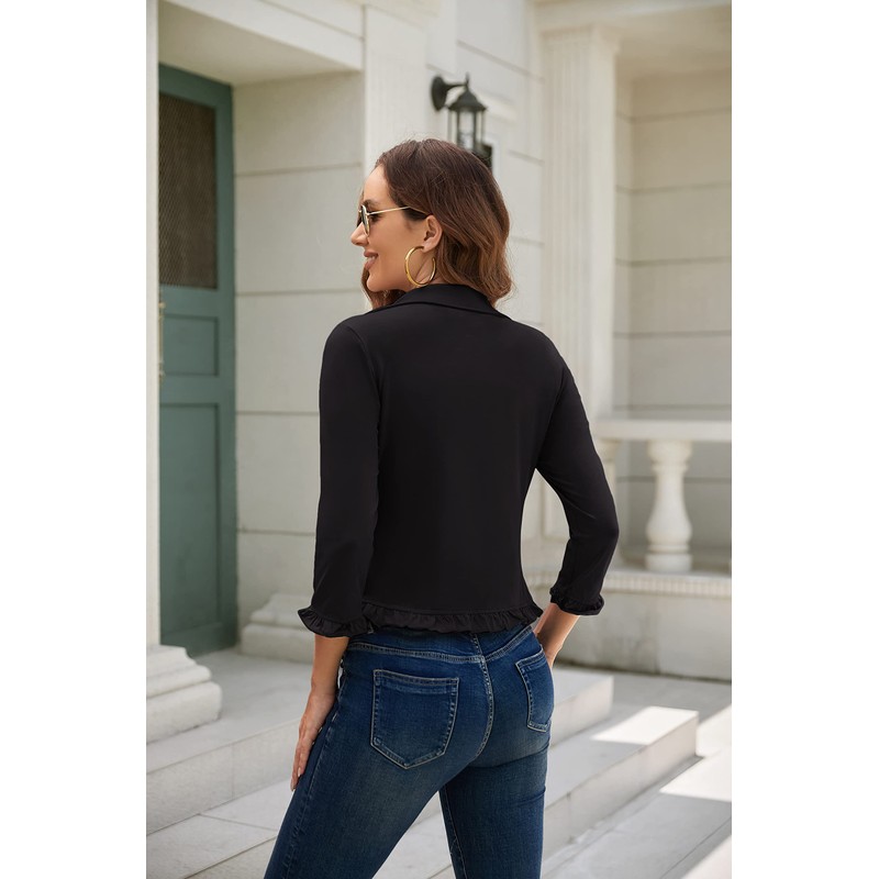 Womens Casual Work Office Blazer Open Front Cardigan Jacket Bolero Shrug Black L