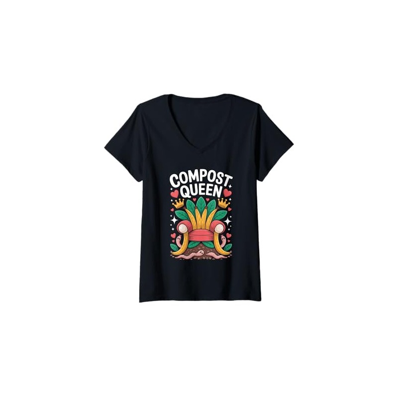 - Rule your no-waste kingdom with this bold Compost Queen design featuring a throne of scraps, banana peels, and earthworms. For the composting diva who knows her soil is sacred and her crown is earned.