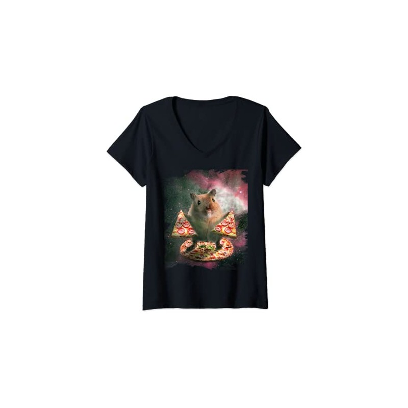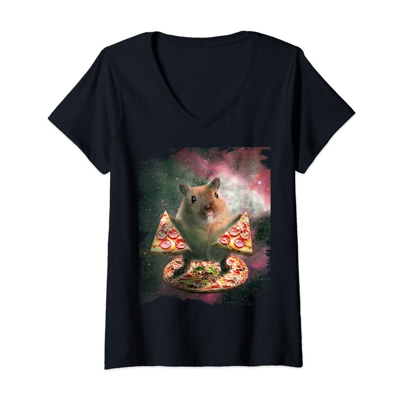 Womens Fun space hamster with pizza V-Neck T-Shirt