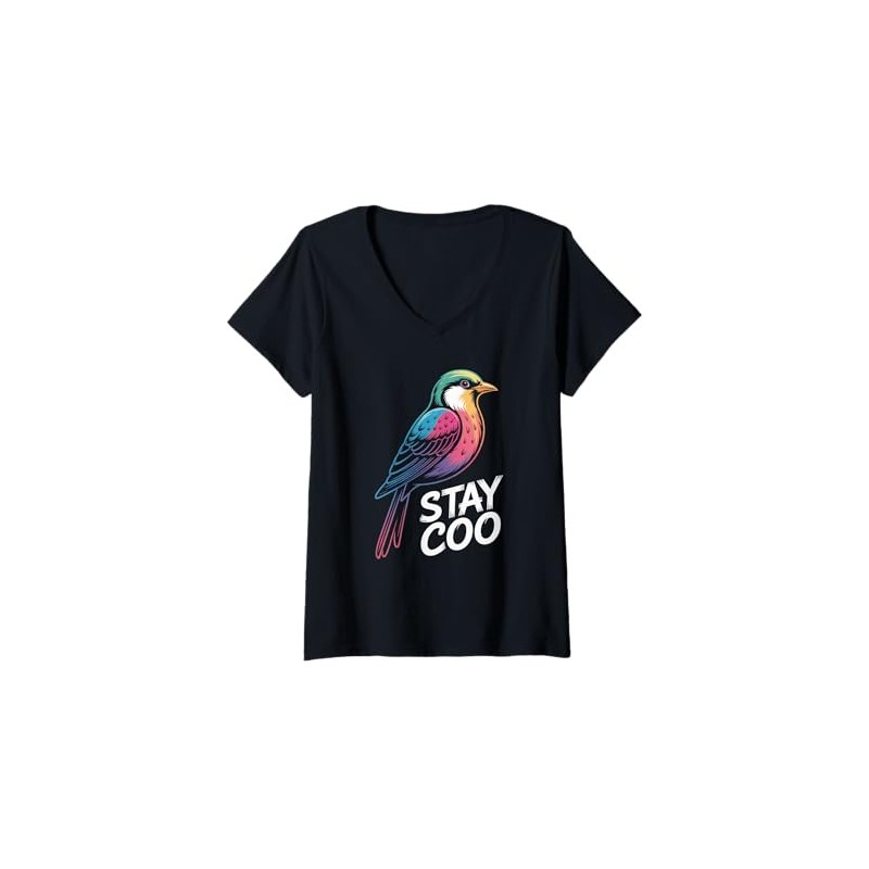 Womens Funny Stay Coo Pigeon Sunglasses Sarcastic Women Men Gag V-Neck T-Shirt