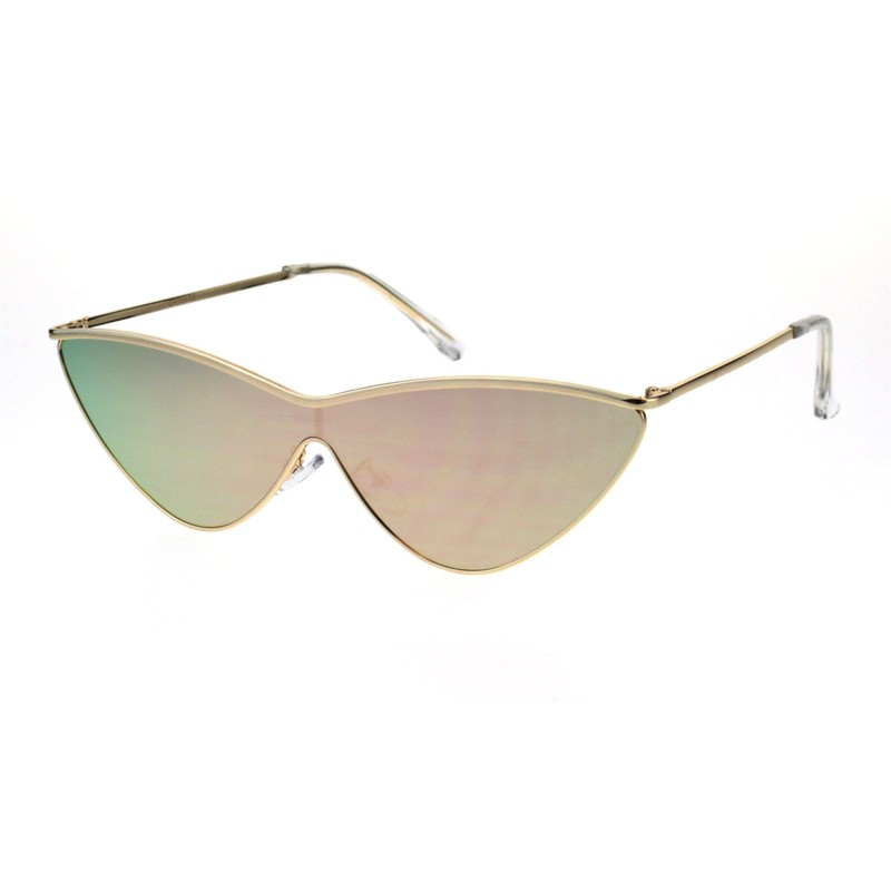 Womens Futuristic Shield Cat Eye Metal Rim Retro Sunglasses All Gold