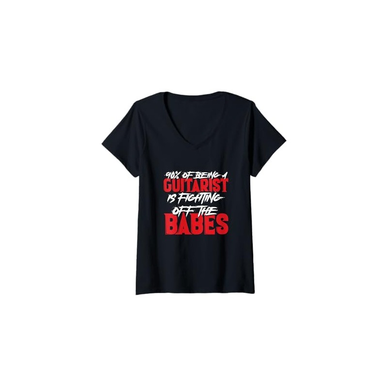 Womens Guitarist Fighting Off Babes V-Neck T-Shirt