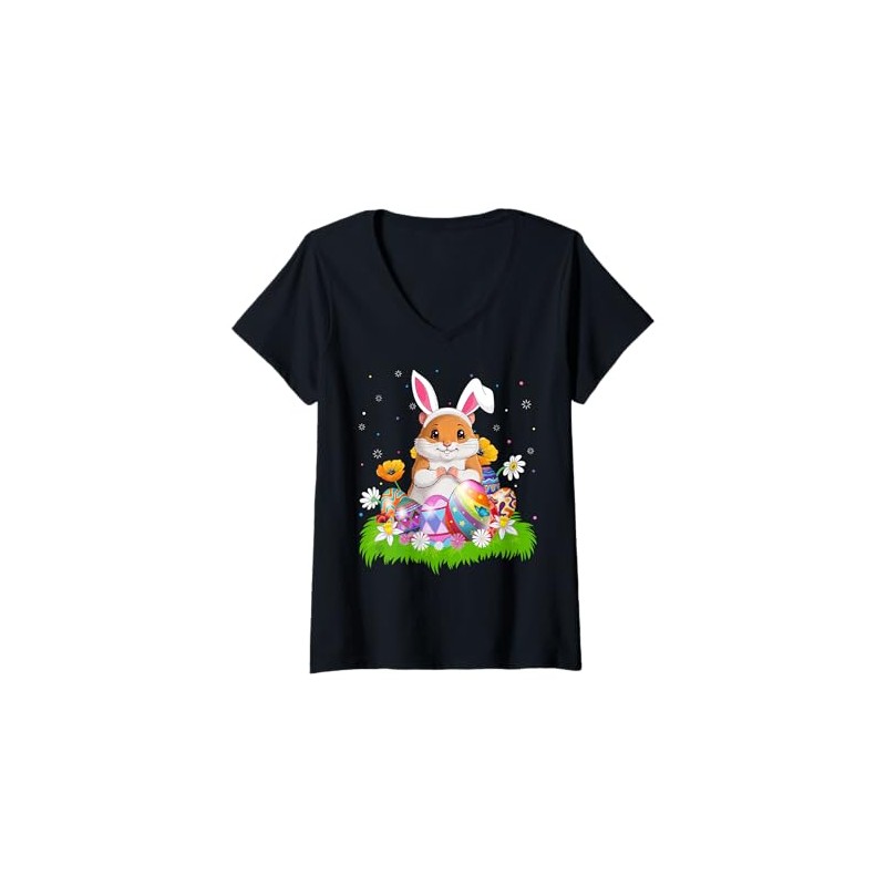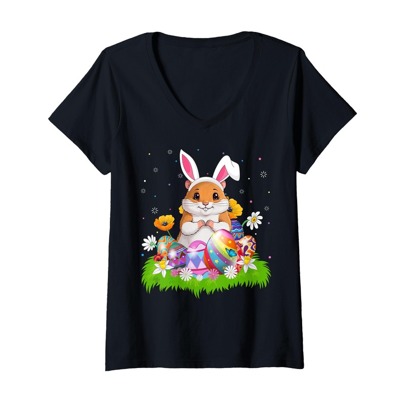 Womens Hamster Easter Egg Hunt Bunny Ear Hamster Easter Sunday V-Neck T-Shirt