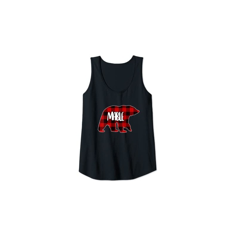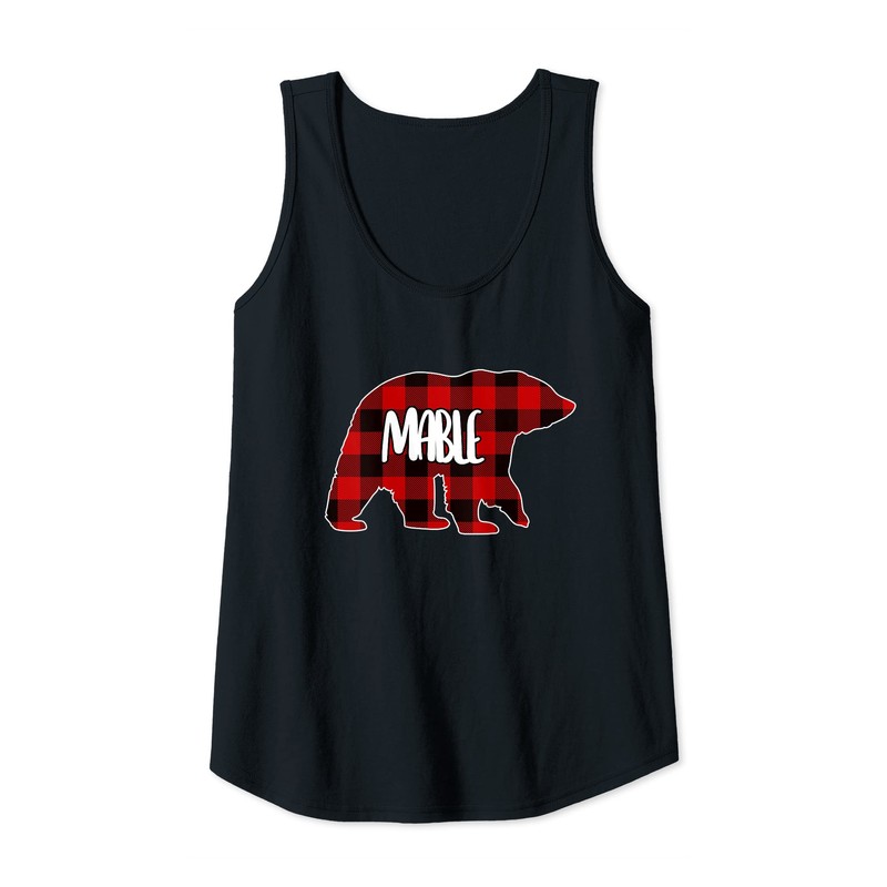 Womens Mable Bear Custom Red Buffalo Plaid Christmas Pajama Tank Top