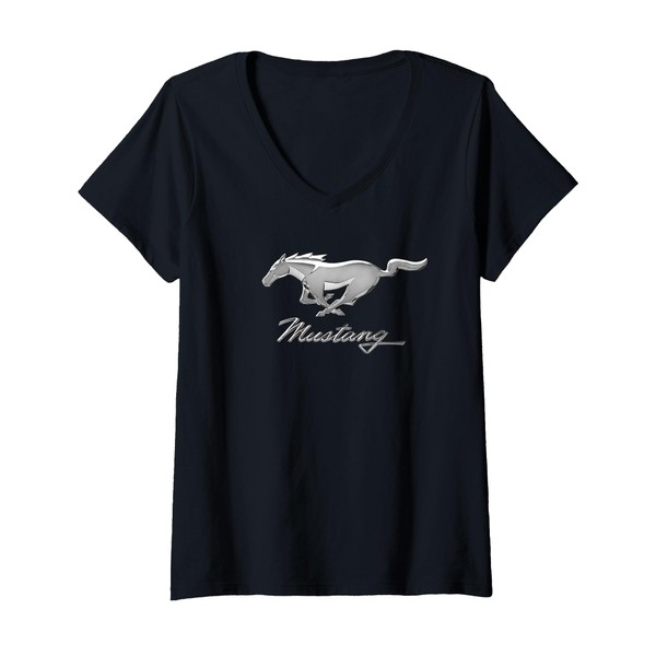 Womens Mustang Emblem V-Neck T-Shirt