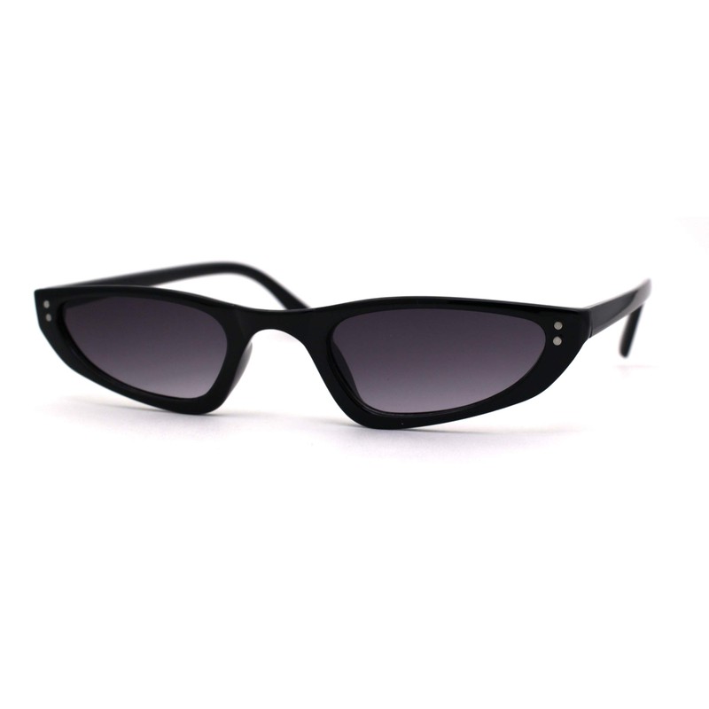 Womens Narrow Cat Eye Mod Plastic Sunglasses Black Smoke