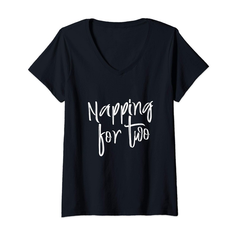Womens Pregnant Mom Napping For Two Pregnancy Maternity Joke V-Neck T-Shirt