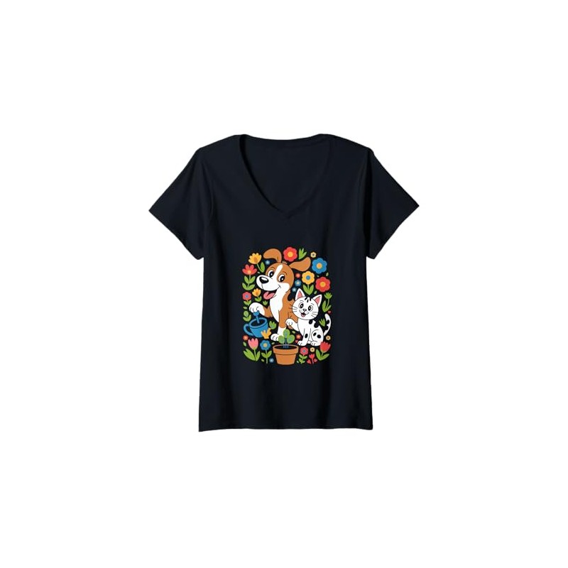 Womens Puppy and Kitten Mama – Dog and Cat Lover V-Neck T-Shirt