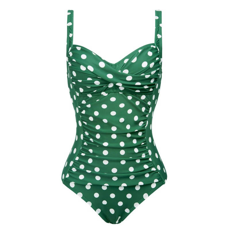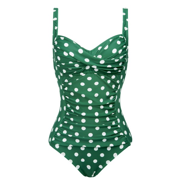 Womens Push Up Tummy Control One Piece Swimsuit/Bathing Suit(Green Polka Dot,Size 12)