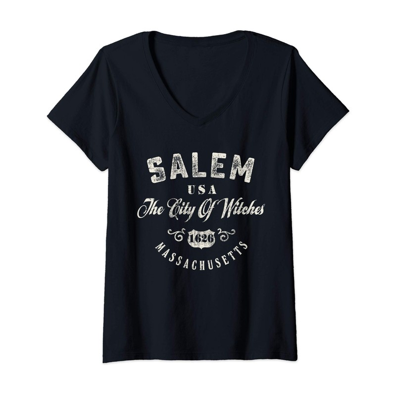 Womens Salem The City Of Witches Massachusetts Vintage V-Neck T-Shirt