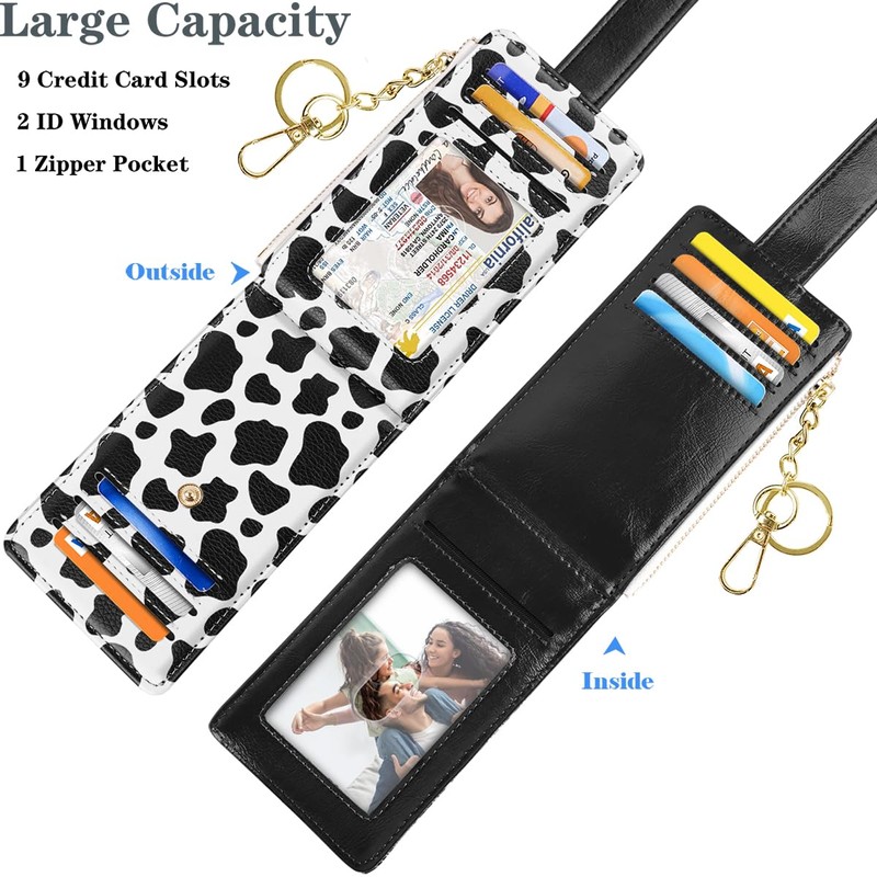 - Small card holder wallet: Measure 5.3" x 3.1" x 0.4" inch. Comes with 9 card slots and 2 ID windows, 1 keychain zipper pocket. Compact yet slim enough to put into your pocket, handbag or your crossbody bag. It is convienient to take it everywhere.