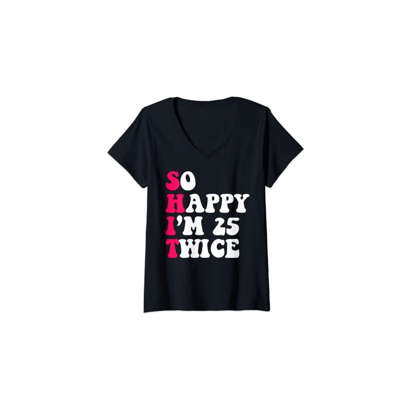 Womens So Happy I'm 25 Twice V-Neck T-Shirt