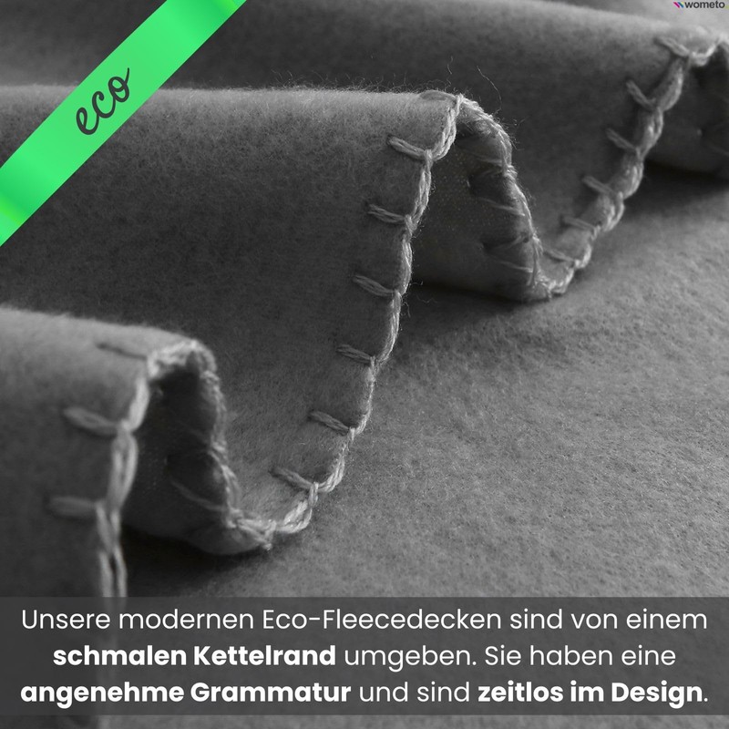 - Quality: original wometo eco fleece blankets remain lint-free even with frequent use and after washing (anti-pilling), eco blanket with narrow edge (overlock stitch) - made from 100% GRS certified recycled polyester (Control Union 1231252)