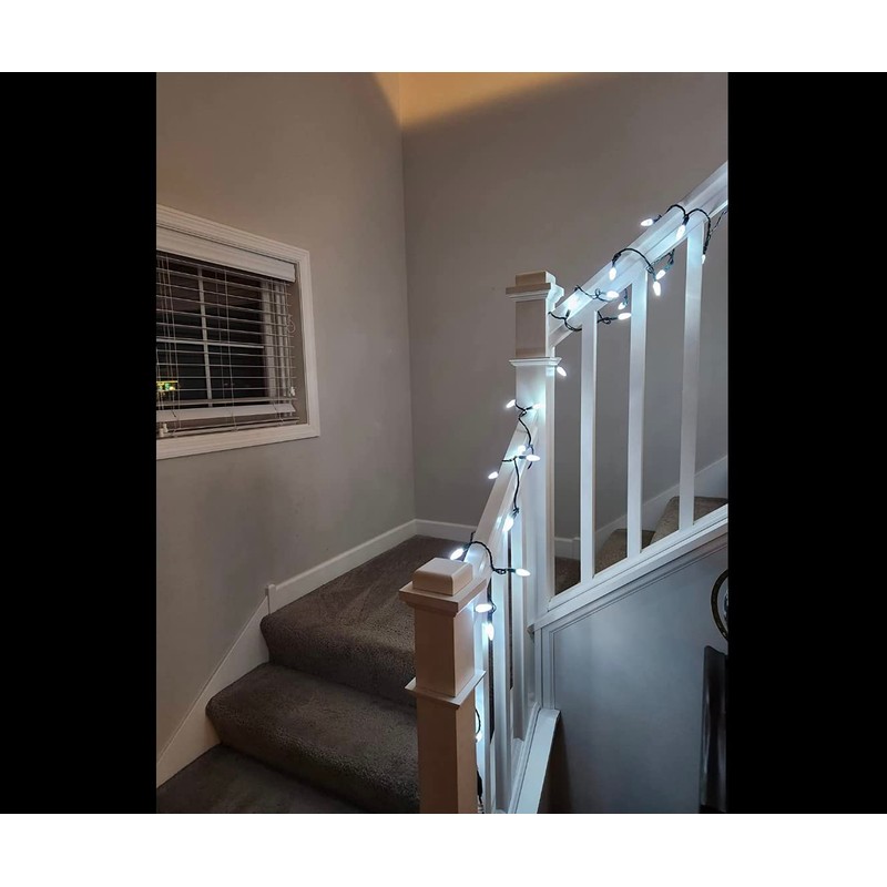 - White Christmas Lights: C6 bulbs are larger than mini lights but smaller than C7 or C9. The prismatic lens provides a bright glow, with a 6.3" lead and 6.7" tail for easy end to end connection