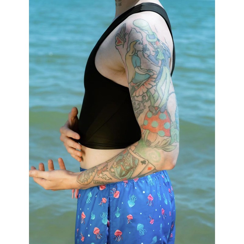 - Designed for swimming: after a year, we developed this elasticity binder trans got much flatter on your body, but still more pressure than common breast binder ftm, with fully closed seams. So there are no internal seams that dig in, flatten the chest binder and promote a masculine look when you swim