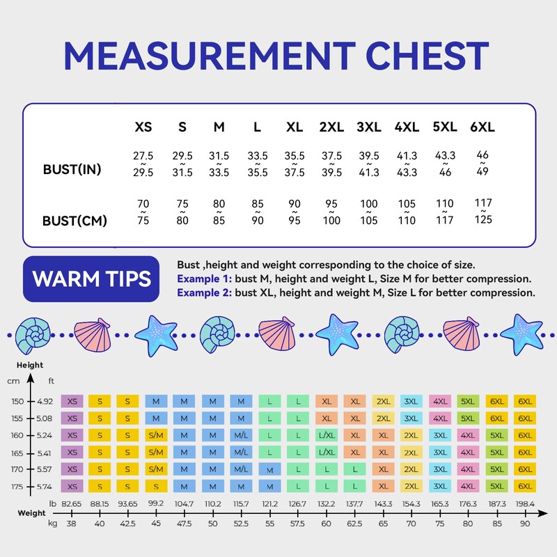 - Wonababi - Sizes - Chest circumference: XS:70-75 cm, S:75-80 cm, M: 80-85 cm, L: 85-90 cm, XL: 90-95 cm, 2XL: 95-100 cm, 3XL: 100-105 cm, 4XL: 105-110 cm, 5XL: 110-117 cm, 6XL: 117 cm. -125 cm
