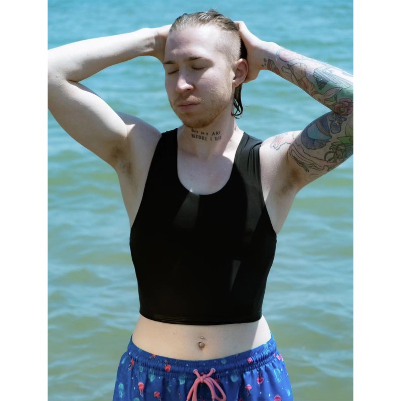 Wonababi Swim Binder, Chest Binder Trans with Pullon, Swimsuit Top for FTM, Queer, black