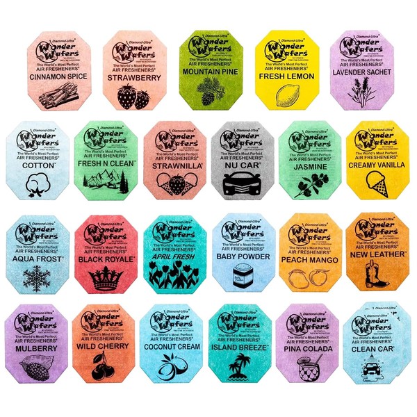 Wonder Wafers Car Air Freshener Wafers Variety Pack of 24 - Individually Wrapped Car Air Fresheners - 23 Scents Car Fresheners (24 Pack 23 Scents)