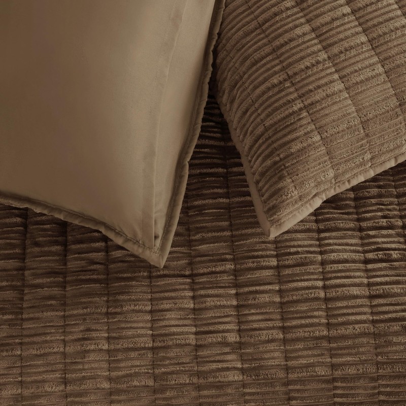 Wonderful Luxury Velvet King Corduroy Quilt Set 3 PCS Striped Stitching Lightweight Comforter, Pet-Friendly, Tear and Slip Resistant, Soft Bedding Set for All Seasons (106x94,Cocoa Brown)