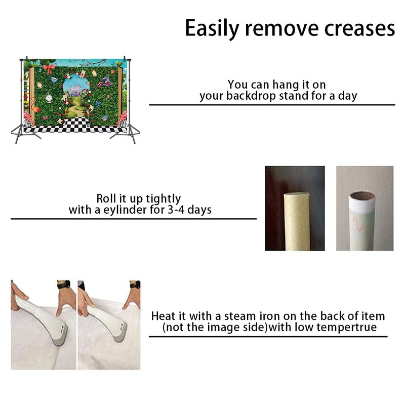 - 💜【Warm tips】: Only One Backdrop included,No stand;Item will be sent by folded. If necessary, please iron the back side (not the image side) with low tempertrue to easily reduce the wrinkle. To avoid possible steam damage, place a layer of dry cloth between the backdrop and the iron.
