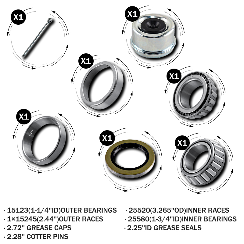 Wonderpartmotive Trailer Wheel Bearing Kit 15123 15245 25580 25520 For 5200-6000lbs CA
