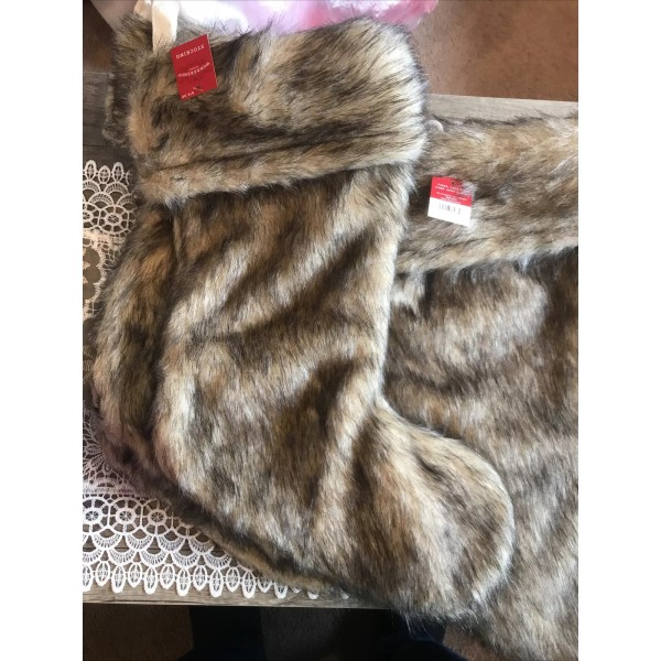 Wondershop Target Faux Fur Christmas Stocking Brown Plush Rustic Cabin 17”