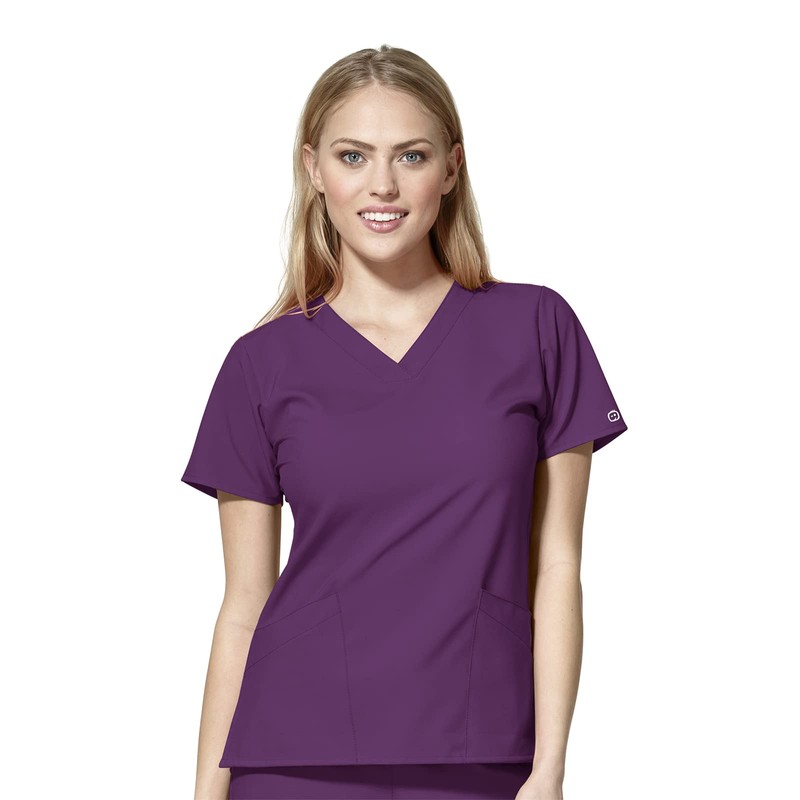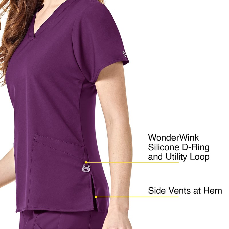 WonderWink Womens Basic V-Neck Top Medical Scrubs Shirt, Eggplant, X-Large US