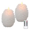 Wondise Pine Cone Flameless Flickering Candles with Remote and Timer, Set of 2 Battery Operated LED Moving Wick Real Wax Christmas Home Decoration Candle(3.5 x 4.7 Inches, White)
