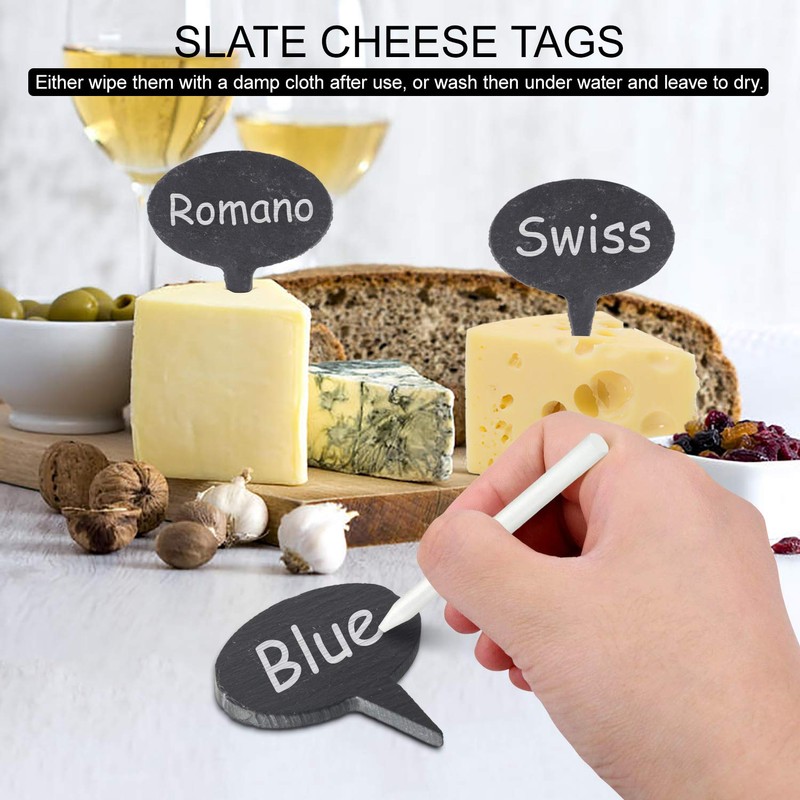 - The cheese labels are made of natural slate stone. safe and non-toxic, very easy to clean