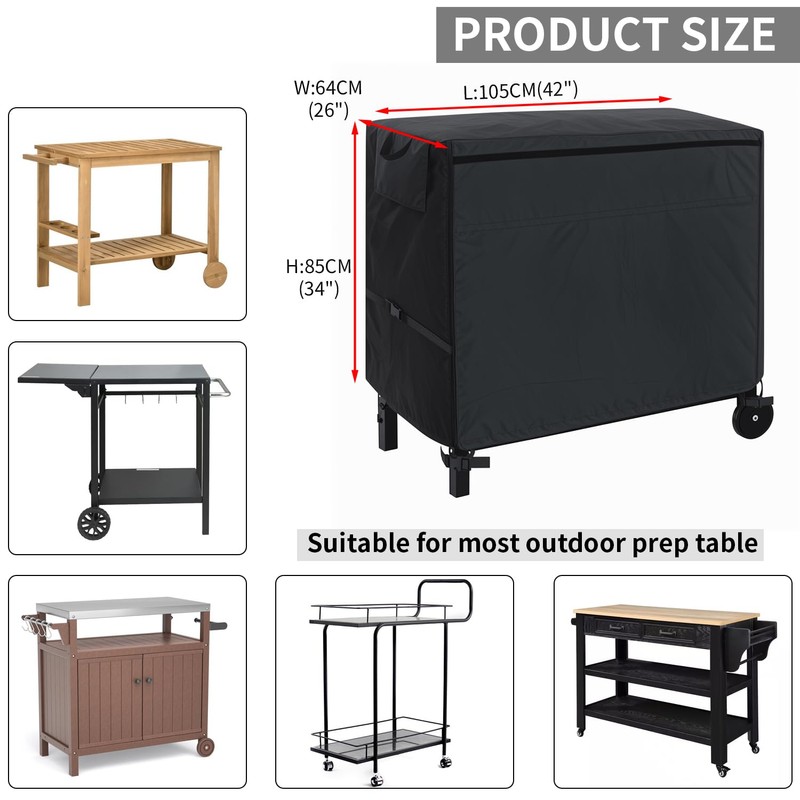 - Wide Application: Our outdoor cart cover fits various furniture of similar size and is suitable for outdoor prep tables, flattop worktables, grill prep stations, bbq table, pizza oven table, Keter Unity and Royal Gourmet Cart Flattop outdoor worktable as much as possible