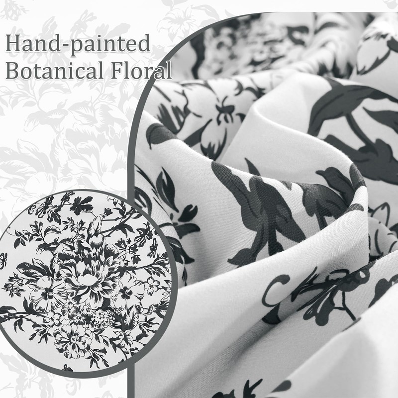 - ☁️Unique Floral Patterns: 8 pieces comforter set features a vivid dark gray floral branch patterns brings a elegant, nature look to your bedroom.The intricate floral branch pattern creates a serene atmosphere, adding an warm touch flavor to your sleeping space.