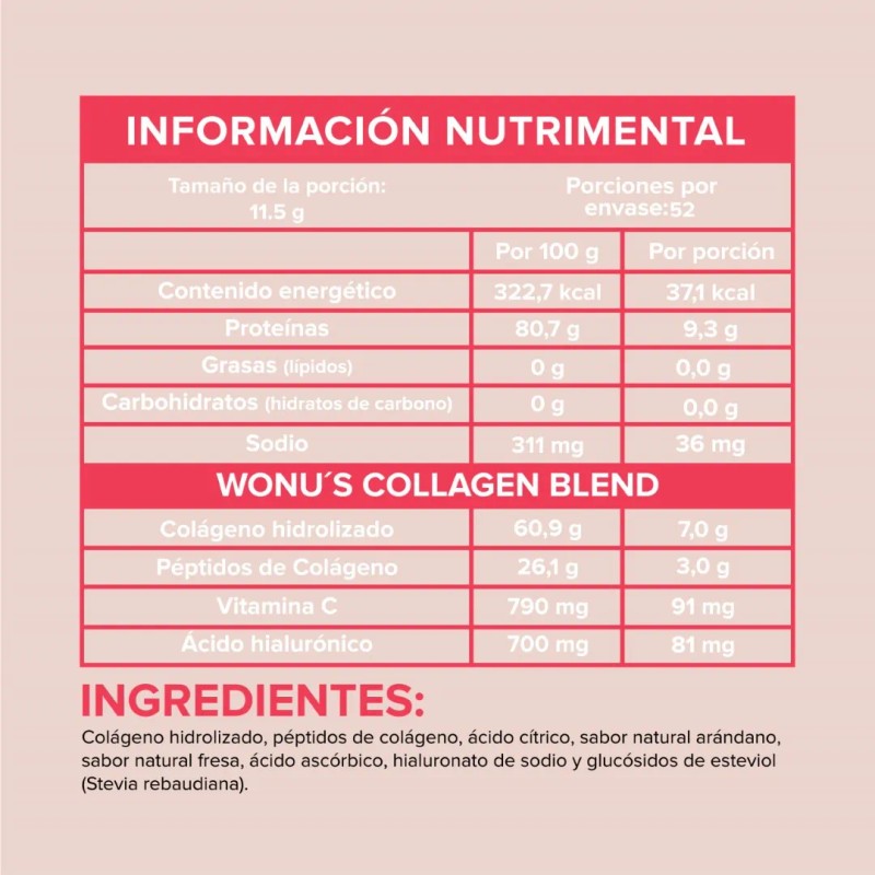 Wonu Colágeno Hidrolizado Polvo con Ácido Hialurónico 600g