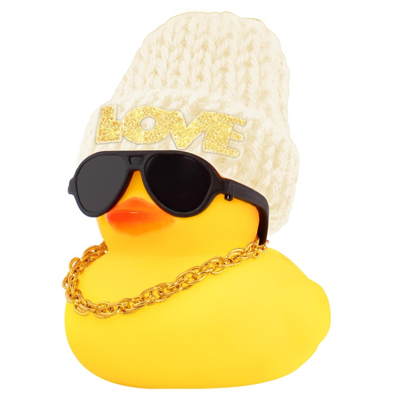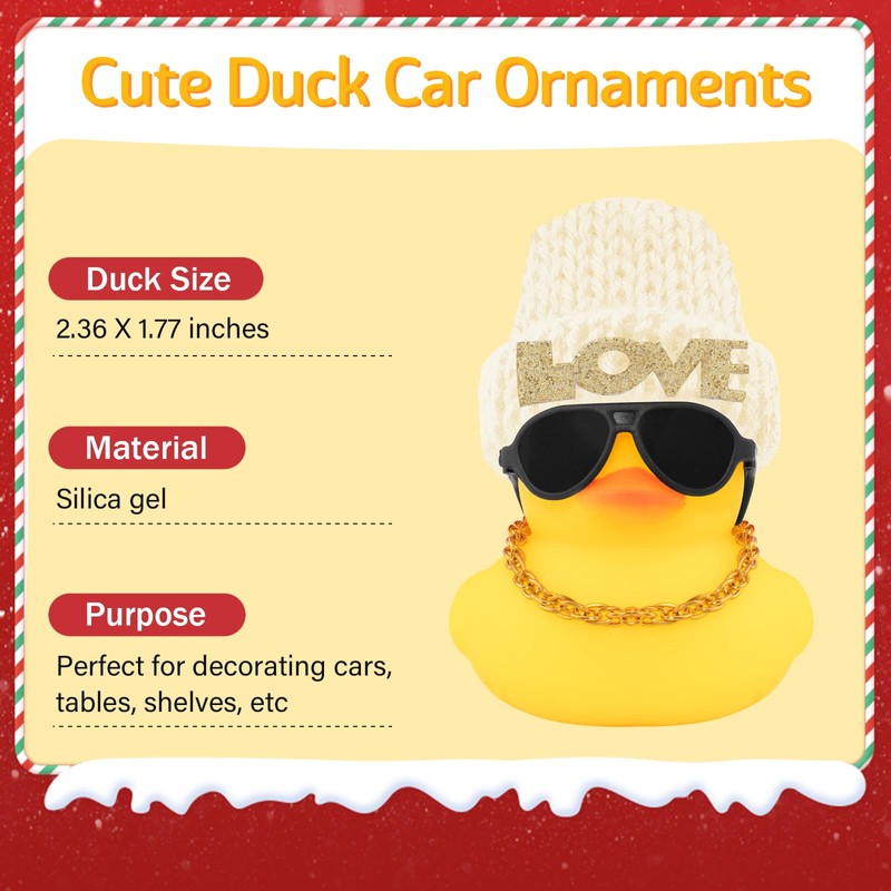 wonuu Car Dashboard Rubber Ducks Christmas Decorations, Christmas Eve Rubber Ducky for Car Ornament Cute Duck with Love Knit Hat, Glasses, Necklace, White