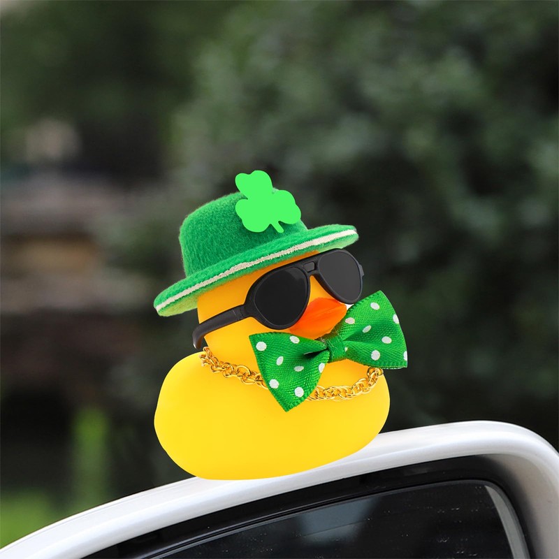 - Funny Duck Car Ornaments: These St. Patrick's Day car ducks for the dashboard feature an Irish green top hat, shamrock accessories, glasses, gold chain and bow tie enough double-sided tapes. They are unique ducks designed to decorate the interior or exterior of your car. Whether you choose rubber ducks for your car to place on the dashboard trim or other areas of your car, these adorable duck accessories are sure to bring a smile to your face as you drive down the road